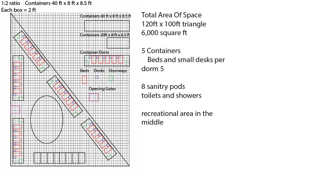 My first connection with My Friend’s Place was when I noticed an opportunity to build a dormitory-styled assisted living facility next to their location in Hollywood. I had many ideas on how I would make the housing, but when I thought of cost-efficient and transportable, the best idea was shipping container homes. Here is what my first schematic looked like for the project.